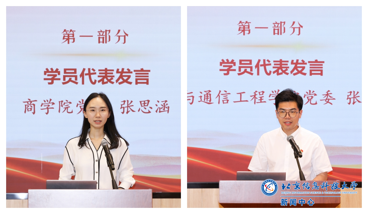 本期教师青马班学员代表张思涵、新一期教师青马班学员代表张思宇依次发言。