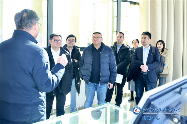 会前,钱晓钧一行参观了立德楼沙河校区沙盘、学校科研成果展和学校图书馆等场所。