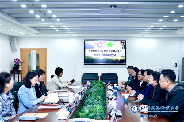 两校签约授牌仪式上,郭福从办学历史、学科专业、科技创新、服务社会等方面介绍了学校各项事业发展情况,展示了学校面向优质生源基地校的四大服务体系。他表示,中学教育是学生接触创新性思维和实践技能的起点,未来双方将共同依托“优质生源基地校”共建平台,在大中小全方位一体化人才培养、人工智能课程建设、学术交流等方面加强合作,着力培养具有较强实践能力、创新意识与国际视野的高素质应用型创新人才。希望未来在“优质生源基地校”共建的基础上,共享优化资源配置,着力提升面向首都区域、产业经济发展培养信息科技人才的能力,形成高中、大学贯通培养创新拔尖人才的新路径。也期待通过更前沿的课程建设、科学研究、项目合作、共同培养等方面深入共建,实现中学教育与高等教育的有效对接,努力推动资源共享和优势互补,发展各自领域的引领优势。