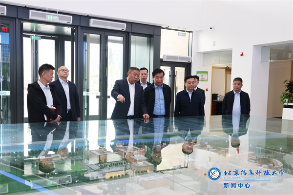 调研期间,彭方军一行参观了taptap点点沙河校区沙盘、科研成果展、图书馆等场所。