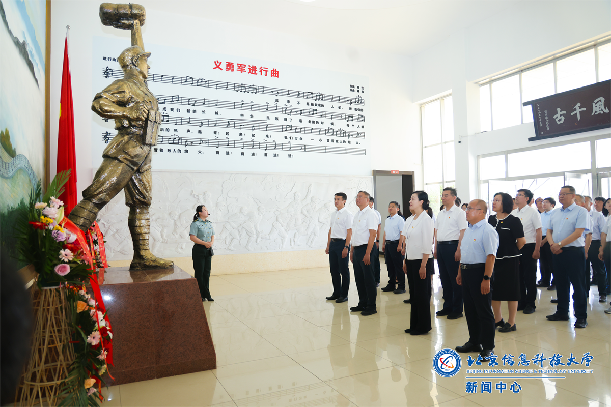 座谈会前,双方共同前往董存瑞纪念馆,深切缅怀革命先烈,接受深刻的党性教育和精神洗礼。在纪念馆外,解江凌带领全体党员,面向鲜红的党旗,重温入党誓词。随后,全体人员怀着无比崇敬的心情,向董存瑞烈士雕像敬献花圈,鞠躬默哀,深切追思英雄的丰功伟绩和崇高精神。最后,大家走进纪念馆,在讲解员的讲解下,通过详实的历史图片、珍贵的文物和感人的故事,全方位了解董存瑞烈士短暂而光辉的一生,以及革命先烈坚定的理想信念和视死如归的革命精神。