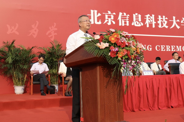 在升国旗,奏国歌仪式后,校党委副书记、校长王永生致辞寄语新生。他代表学校和全体师生员工,对2019级同学的到来表示最热烈的欢迎。王永生希望同学们见贤思齐,以优秀的学长为榜样,在信息科大努力成长为“最好的自己”,并提出殷切希望:一要志存高远,胸怀天下。当前,中国已经进入了崛起的新时代,从国家到行业,从企业到个人,千帆竞速、百舸争流,都在和未来赛跑。希望同学们在大学期间,不仅学习扎实的科学文化知识,更要胸怀大担当,把握大趋势,紧扣时代脉搏,融入社会前进的脚步,在国家、民族、人类未来的大视野中认真思考、积极实践,勇做时代前列的奋进者,服务社会的奉献者,历史使命的担当者。二要脚踏实地,做好规划。相对于中学,大学的课堂更大、更丰富,学生的成长更全面、更立体,大学的学习更自主、要求更高。希望从现在开始,同学们就要紧张起来、行动起来,认识自我,规划自我,不弃微末,不舍寸功,“博观而约取,厚积而薄发”,努力学习科学知识,锤炼过硬本领。三要情理兼修,德才并蓄。大学最重要的是培养学生独立思考的精神和独立探索的勇气,引导学生自觉的去认识情感、管理情绪、提高情商。希望同学们不仅仅求知问学,丰富学识,更要细心观察,独立思索,用心去感受,用真情去交流,情理兼修,德才并蓄!四要锐意进取,开拓创新。创新是当今时代发展的主旋律,也是信息科大人与生俱来的基因。希望同学们在信息科大积极投身所喜爱的领域,挑战感兴趣的问题,培养创新思维,锻炼创新能力,积极主动成为学校科技创新的主要角色。学校将全力支持每位同学的自主发展、创新发展!