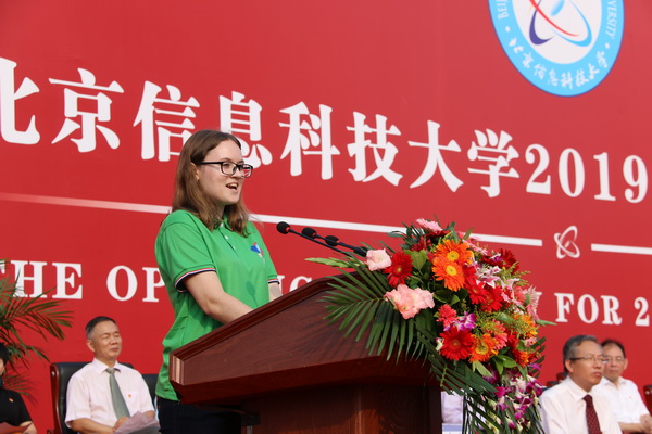 仪器科学与光电工程学院2019级测控技术与仪器专业的李舰飞同学作为新生代表发言。他号召同学们以优秀的学长为榜样,立鸿鹄志,做奋斗者,在信息科大努力成长为最好的自己。来自俄罗斯的2019级英语专业绿桑同学作为外国留学生代表发言。她分享了自己学习汉语,求学中国的经历,表达了对中国的热爱,以及对未来在信息科大大学生活的美好期待。六位在校生代表以诗朗诵的方式,分享了自己大学四年生活的感悟,号召师弟师妹们凝聚青春之力量,共筑驰宏之梦想,共同汲取智慧和力量,让信息科大的旗帜迎着新时代的朝阳一起扬帆远航!