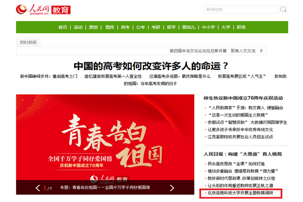 9月27日,校党委书记王传亮一行就服务保障国庆70周年庆祝活动到各学院开展专题调研。“学校当前最大的政治就是服务保障国庆70周年庆祝活动,我们要将“不忘初心、牢记使命”主题教育与服务保障国庆工作结合起来,切实加强爱国主义教育、弘扬爱国主义精神,把爱党爱国爱社会主义统一起来,组织开展好爱党、爱国、爱校教育。”调研中,王传亮说,学校确立了以政治建设为统领,全面推进空间环境、办学环境、育人环境、治理环境和情感环境等“五个环境建设”,建设信息特色鲜明的高水平大学的发展目标。“我们要把主题教育中激发出的爱国热情转化为立足岗位、发奋工作的实际行动,转化为攻坚克难、干事创业的实际成效。”