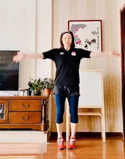taptap点点体育部为满足疫情防控期间全校师生健身需求,推出简便易行的居家健身方法,普及科学健身知识,以拉伸练习、弹力带练习、核心(仰卧起坐、平板支撑、两头起等)练习以及小哑铃(或矿泉水瓶替代)、俯卧撑(或跪卧撑)、原地踏步等为主,倡导疫情防控时期师生的健康生活方式。taptap点点体育教师、前柔道世界冠军徐丽丽做动作示范。