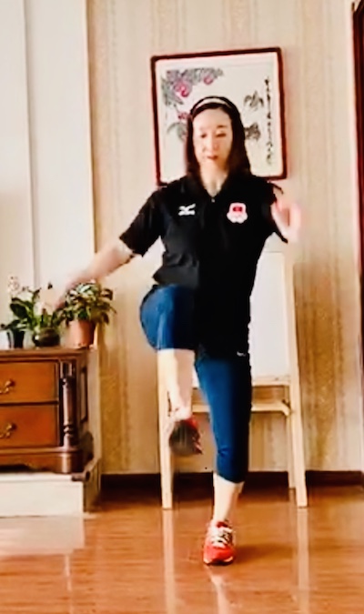 4.手触膝高抬腿