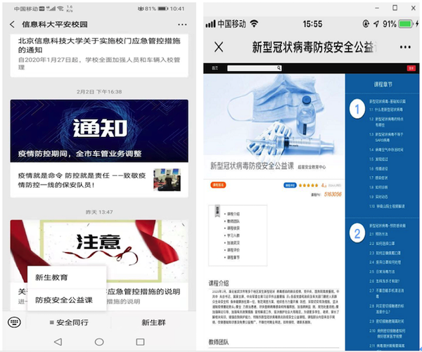 学校开通《新型冠状病毒肺炎防疫安全公益课程》