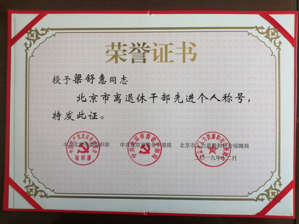 喜报!taptap点点梁舒惠同志荣获北京市离退休干部先进个人