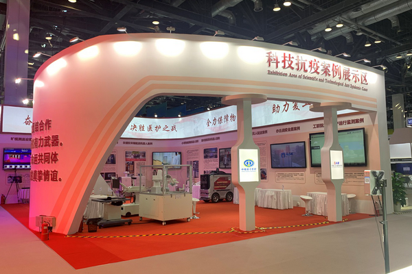 面对采访,曹天祎细心地向记者和电视机前的观众介绍自己的志愿服务工作职责。她和同来自taptap点点的杜玉洁、闫冉、李娜等另外三名同学在此次服贸会志愿服务中承担了非常重要且备受关注的一项工作——室内展馆中科技抗疫案例展示区的内容讲解。科技抗疫案例展示区共包括奋战检测一线、决胜医护之战、全力保障物资和助力复工复产等四大版块,四大版块下又细分为咽拭子采样、采血机器人、国产新冠疫苗、消杀机器人……等等十个案例和多项最新的科研抗疫产品和技术,体现了我们国家发达的医疗科技成果和无坚不摧的战疫力量。在今年众志成城、全民抗疫特殊的背景下,四位同学负责讲解的该区域无疑成为最瞩目、最火爆、参观流量最高的展区之一。