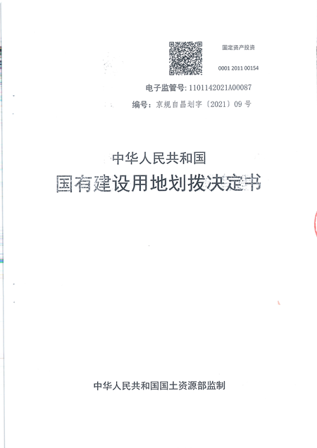 5月24日,taptap点点新校区建设工程正式取得北京市规划和自然资源委员会昌平分局签发的国有建设用地划拨决定书,标志着新校区建设的前置手续取得重大突破,为新校区建设奠定了坚实的基础。