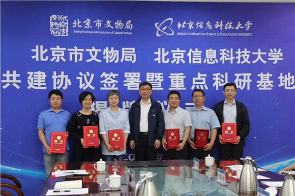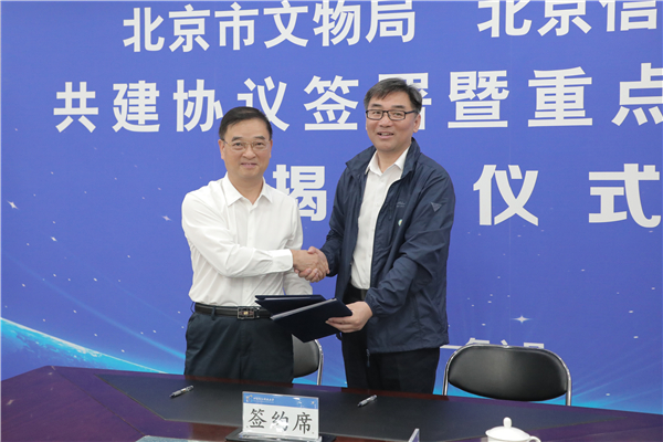 向德春、陈昕签署《北京市文物局重点科研基地共建协议书》。