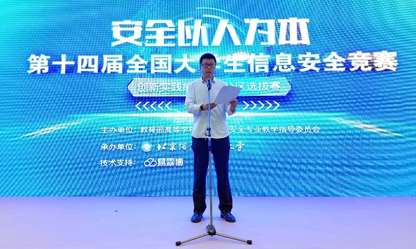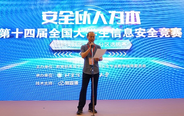 中科院信息工程研究所特聘研究员(教指委委员)刘宝旭裁判长宣读比赛规则