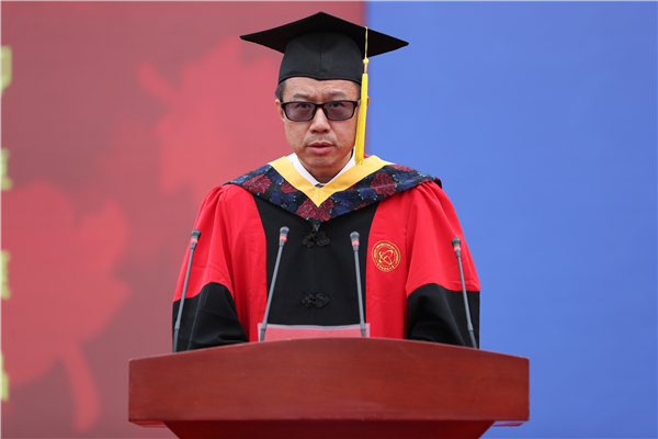 王永生首先代表学校,向顺利毕业的2021届毕业生表示热烈的祝贺!向返校参加毕业典礼的2020届校友表示最诚挚的欢迎!向辛勤培养毕业生的父母和师长表示崇高的敬意和衷心的感谢!