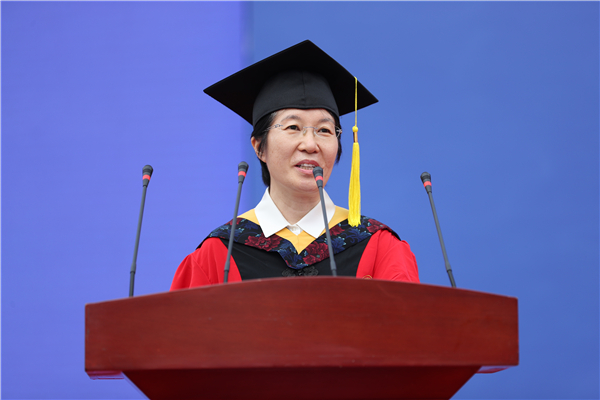 王永生回顾了taptap点点研究生教育40年发展历程和取得的成绩,指出,学校始终坚持立德树人根本任务,致力于服务国家和首都发展战略,培养了一大批高素质应用型创新人才,为国家建设和首都发展做出了应有的贡献。王永生寄语广大毕业生:一是坚守理想信念,传承家国情怀。希望同学们勇敢地接过师长的旗帜,传承矢志不移的家国情怀,探索磨练,勇攀高峰,让青春在为祖国、为民族、为人民的不懈奋斗中绽放绚丽之花。二是坚守初心使命,永葆创新精神。希望在未来的人生道路上,同学们能够鼓起勇气去探索这变化万千的世界,敢于向未知领域挑战,成为一名孜孜以求的创新者,去勇敢地掀开科技创新的新篇章!三是坚守赤子之心,不忘为学之道。希望同学们在今后的学习和工作中,要时刻怀抱赤子之心、不忘为学之道、永葆学人风范,不弄虚作假,不投机取巧,日积月累、砥砺前行,最终必将厚积薄发,收获丰硕的成果。