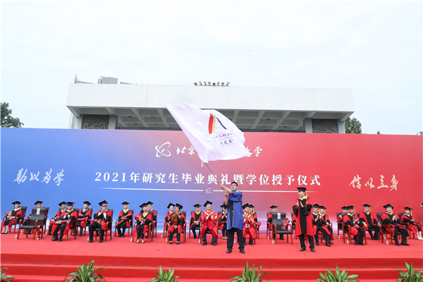 毕业典礼结束后,举行了学位授予仪式,校领导班子成员向获得硕士学位的2021届研究生和2020届研究生代表授予学位。