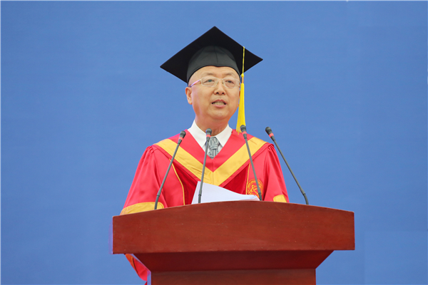 机电工程学院院长黄民作为教师代表发言。他表示,希望广大毕业生,作为青年人要拼搏正当时,奋进新时代;作为社会人要与时俱进,开拓创新;作为中国人要厚植家国情,胸怀天下事,勇于担当奉献。