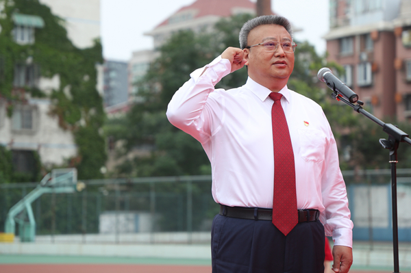 入党誓词是座右铭,是行动指南,它是一名共产党员对实现自己人生最高价值所做出的无悔选择,是一名共产党员对党的庄严承诺。在领誓人校党委书记王传亮的带领下,全体预备党员宣誓,正式党员重温入党誓词。誓言铿锵,广大师生党员铭记初心使命,厚植爱党爱国情怀。