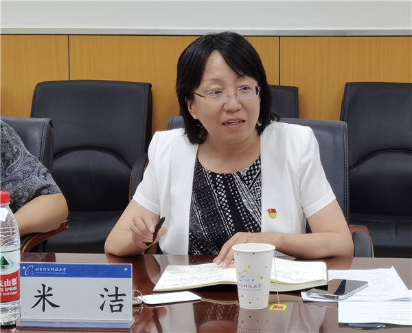 米洁对校督导组在教学质量保障方面发挥的重要作用表示肯定,并希望教学督导工作由评“教”向评“学”转变,注重学生学习成效,加强课程关键环节的教学质量监控与持续改进,推进专业认证工作的顺利开展,为学校教学质量提升献计献策。