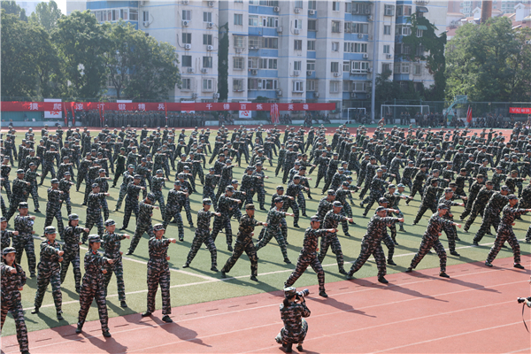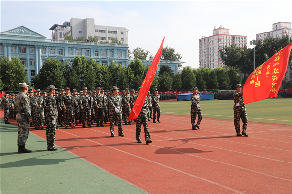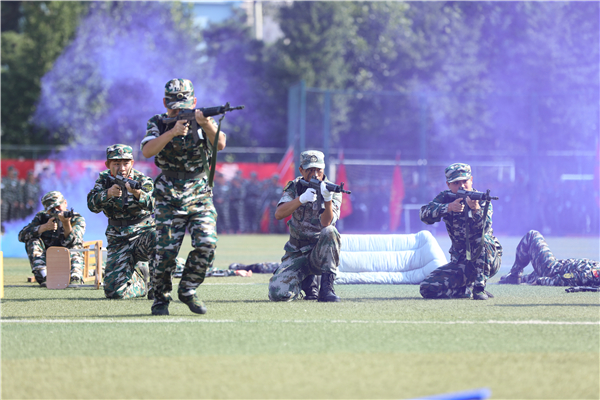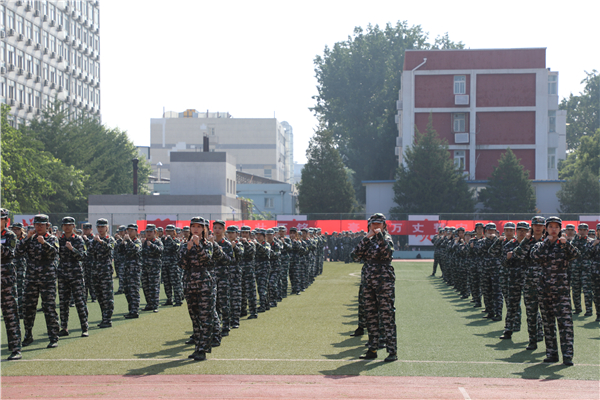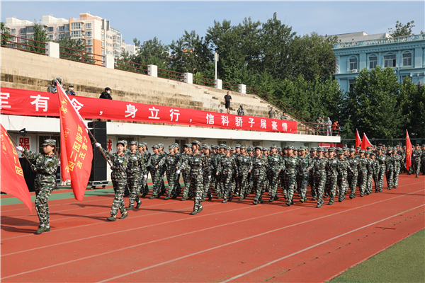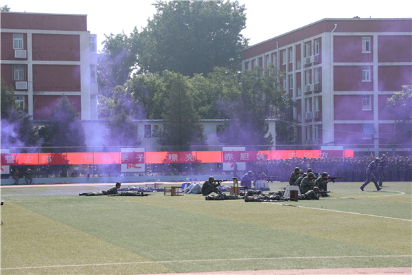 仪式上,参训学生进行了分列式队列展示及军事训练科目汇报表演。