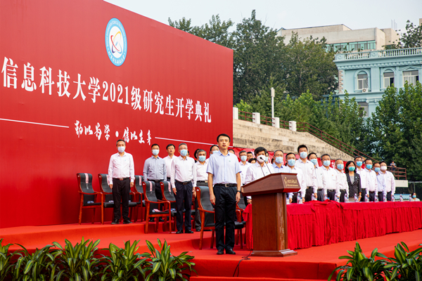 王永生致辞寄语新生。王永生代表学校党委和学校向全体2021级研究生表示热烈的欢迎和衷心的祝贺!王永生向同学们介绍了学校的历史沿革和发展成就,勉励他们要努力成为信息科大高质量发展之路上的参与者、见证者和创造者,并提出三点希望:一是立足时代、科研报国。希望同学们在未来学术科研中,坚守责任担当,积极融入社会发展,把科研做在新时代祖国的大地上,把文章写在人民心中,做出新时代青年应有的选择与贡献。二是勤奋为学、严谨治学。希望同学们在读研期间,秉承信息科大“勤以为学 信以立身”的校训精神,立志勤奋学习、敢啃硬骨头、愿下“笨功夫”,锲而不舍、学而不厌,博观约取、厚积薄发,为自己日后的理论和创新突破打下坚实的基础。同时在任何时候都要心存敬畏、严谨治学、砥砺品行,用行动维护学术精神,捍卫学术道德,进行有尊严的学术创造。三是勇于开拓、大胆创新。希望同学们以优秀为榜样,把握专业前沿和研究空白,打破惯性思维,保持创新敏感,走在时代前列,早日拥有自己的科技创新成果,争做新一轮全球创新的引领者。