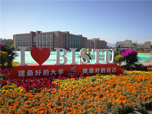 校园内花团锦簇,“建最好的大学,做最好的自己”掩映在花海之中,浓浓的喜意晕染整个校园,让我们在最美好的时代,一起努力建设最好的大学,力争做最好的自己。