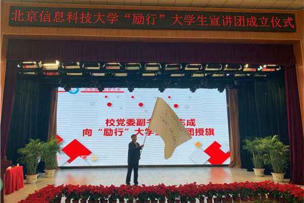 周志成为“励行”大学生宣讲团授旗,并对宣讲团提出了要求和希望。他强调,“励行”大学生宣讲团要传播正能量,树立优秀标杆,引领全校青年学生努力成长为德才兼备、全面发展的新时代青年。