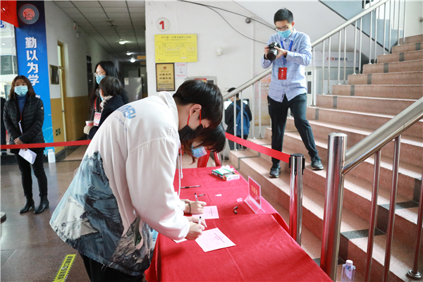 广大师生员工早早来到投票站有序排队,严格落实测温、戴口罩、“一米线”等疫情防控要求,听从现场工作人员指挥,严格按照选举流程,核验选民证、领取选票、填写选票,依序投出自己庄严而神圣的一票。整个选举过程庄严紧张而有序。