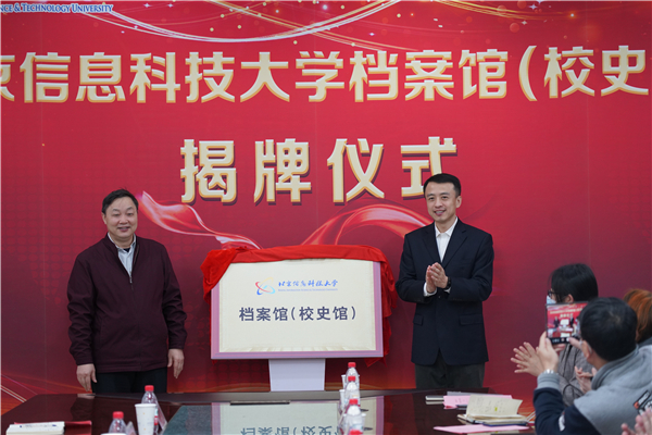 方德英、于世洁共同为档案馆(校史馆)揭牌。