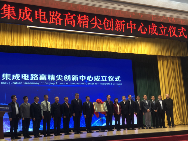 成立仪式由中国科学院院士、北京大学副校长张平文主持,市教委主任刘宇辉,北京大学校长郝平,中国科学院院士、清华大学校长邱勇,中国科学院院士、北京大学教授、集成电路高精尖创新中心主任、东南大学校长黄如,中国工程院院士、清华大学教授、集成电路高精尖创新中心主任、华中科技大学校长尤政,北京市科委、中关村管委会二级巡视员刘航共同为中心揭牌。