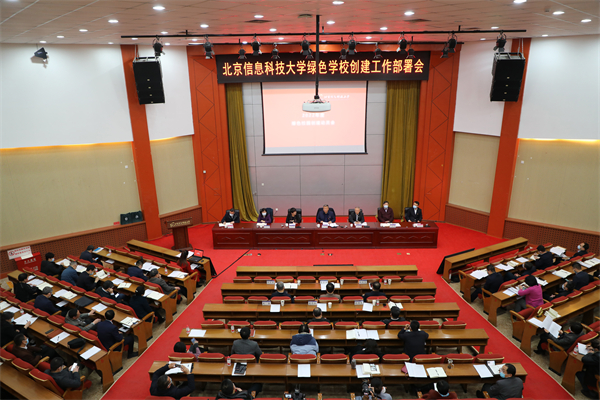 3月4日上午,学校在小营校区报告厅召开绿色学校创建工作部署会。同时在小营校区国际学术交流教室、小营校区主教教室、健翔桥校区图书馆报告厅设分会场。校领导班子成员,全体处级干部,全体正教授,学院系主任、办公室主任、分团委书记参加会议。