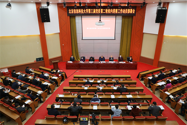 3月4日,学校在小营校区报告厅召开第三届党委第二轮校内巡察工作动员部署会。同时,在小营校区国际学术交流教室、小营校区主教教室、健翔桥校区图书馆报告厅设分会场。校领导班子成员,全体处级干部,全体正教授,学院系主任、办公室主任、分团委书记参会。