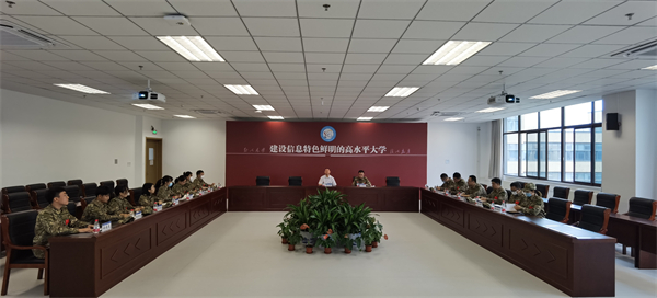 在与承训部队的座谈会上,周志成详细听取了承训部队负责人、党委学工部(武装部)负责人、学院党委副书记(学生工作负责人)关于军事训练计划与实施情况、军训期间学生管理、后勤保障、疫情防控等方面的工作汇报。