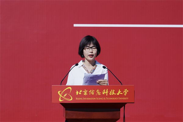 计算机学院周淑一老师作为教师代表发言。她在发言中分享了自己在信息科大从学生到教师的24年学习和工作时光,希望同学们大学期间明确目标,夯实学识,脚踏实地,付诸行动,保持自律,养好习惯,在信息科大这片沃土上心怀家国,在大气中千锤百炼,在大为中追求新高,豪情满志的谱写自己的光辉篇章,让自己在信息科大的时光成为一生中最美好的一段回忆。