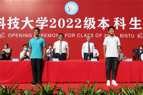 校党委副书记、校长王永生致辞。王永生首先对3068名本专科新生加入taptap点点官方网站这个大家庭表示热烈的欢迎和诚挚的祝贺。他指出,作为新时代的中国青年,同学们身处中华民族伟大复兴的关键时刻和实现“两个一百年”奋斗目标的重要征程,生逢伟大时代,重任在肩,唯有担当。希望同学们在信息科大,学而不辍、赓续奋斗,把厚植爱国情怀、追求学术真理、探索世界本质作为目标,增长才干、涵养德行、勇担使命。