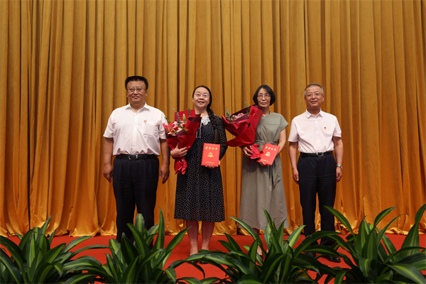 王传亮、王永生为受表彰个人及团队代表李红、倪渊老师颁奖。