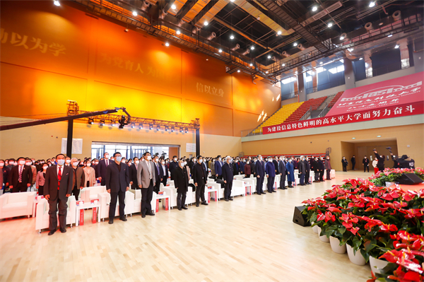 谈到获得博士学位授权,王传亮强调,新时代新发展,学校跻身博士学位授予单位,这是学校办学历史上具有里程碑意义的重大事件,标志着办学层次的跃升,形成了覆盖学士、硕士、博士完整的一体化人才培养体系。我们有信心,聚焦“新一代信息技术产业”等高精尖产业战略需求,对优势学科开展集群建设,构建辐射全部一级学科的信息特色学科群,进一步优化学科布局,提升核心竞争力。
