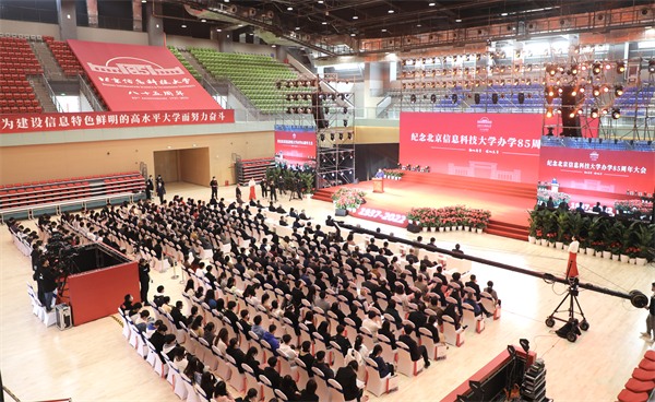 上午9时45分,学校新校区体育馆内气氛庄重热烈,庆祝学校办学85周年大会在庄严的国歌声中隆重开幕。大会以线上线下相结合的形式召开。北京市委教育工委分管日常工作副书记张革,中国工程院院士、北京工业大学党委副书记、校长聂祚仁,原北京机械工业学院、北京工业大学党委书记、中国机械工业教育协会理事长王守法,中国电子教育学会理事长、工业和信息化部教育与考试中心主任马蔷,学校原党委书记郑君礼,学校原校长杜林,学校原党委副书记、全国党建研究会常务理事、北京师范大学思想政治工作研究院院长冯刚,学校原党委常委、副校长、北京印刷学院党委书记高锦宏,学校原党委副书记、北京农学院原党委书记杨军,学校原党委常委、副校长、首都医科大学原党委副书记冯喜春,学校原党委常委、副校长、北京市大数据中心党总支书记、主任张琳,学校原党委常委、组织部长、北京农业职业学院纪委书记鲁雷,学校原党委常委、纪委书记孙毓仁,学校原党委常委、副校长关仲和,学校原党委常委、副校长韩秋实,学校原党委常委、纪委书记冯晓春同志,学校原党委副书记刘筱毅,学校原副校长许宝杰,学校全体领导班子成员,以及师生代表300人出席了大会。大会由校党委副书记、校长王永生主持。