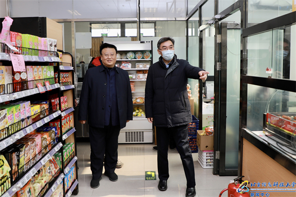 王传亮最后来到校园超市、第二食堂,检查生活物品供应情况和餐饮保障情况。他强调,要确保生活物品和餐饮服务供应的丰富性,满足师生多样化的需求;要时刻绷紧食品安全这根弦,严格食品供应和餐饮人员管理,确保师生吃得健康、吃得放心。