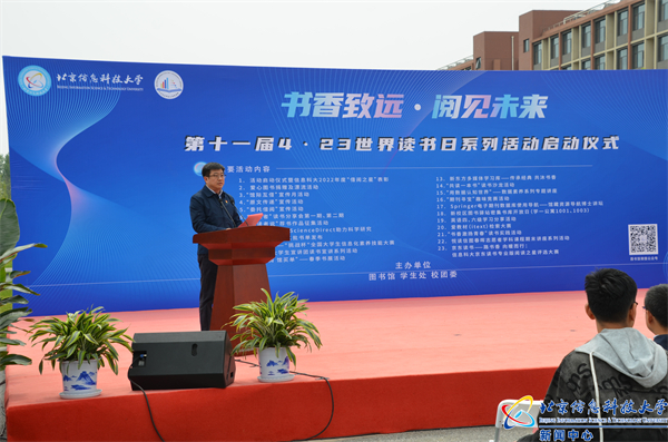 为迎接第28个“世界读书日”,4月23日中午,由图书馆、学生处、校团委联合举办的“书香致远 阅见未来”学校第十一届4·23世界读书日系列活动启动仪式在太行路校区文化广场举行。校党委副书记王文杰,副校长方德英,党委常委、宣传部部长杜世智,相关职能部门负责人、各学院主管学生工作副书记、获得2022年度“借阅之星”称号人员及师生代表共计130余人参加了活动。启动仪式由图书馆馆长兼直属党支部书记杨孔雨主持。