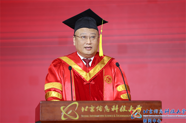 三是聚力笃行实干,驰而不息奋斗。你们在校四年,以一张毕业证书为这段求学历程画上句号,但以人生的广度为参照,学习的道路永无止境,奋进的历程没有终点。这需要踏实笃定实干,驰而不息奋斗。信息科大教师队伍中有很多这样的榜样。比如,学科领军人祝连庆教授,永远有一股年轻人一样的冲劲,凭借实力和努力带领团队,取得了一系列成绩,冲进大湾区,服务国家重大战略需求;苏中教授,不仅科研做得好,同时坚守三尺讲台近30年,懂政治、讲政治,履行立德树人使命,甘当学生成长成才的引路人;黄民教授深耕教学科研一线,带领团队获评“黄大年式教师团队”,据说是深受学生喜爱的“最帅院长”,当然还有很多很帅的校领导、老师们。还有很多的干部、教师辛勤奋斗在新校区建设与搬迁、疫情防控、教学科研等各条战线。信息科大就是因为有这样的一群人奋斗在一起,形成一片炬火,照亮了我们光明灿烂的前路!同学们,你们处于最好的时代,施展才华的舞台无比广阔,实现梦想的前景无比光明,希望你们传承中华民族和信息科大人的优良传统和实干精神,追光前行,驰而不息,永远步履不停,让青春在奋斗中永恒!