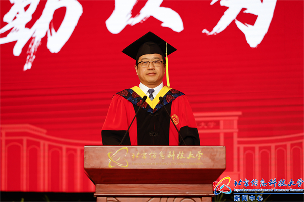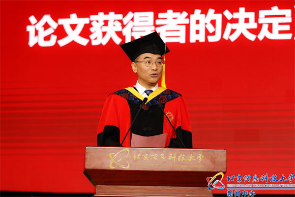 全体校领导为北京市优秀毕业生授予学位。