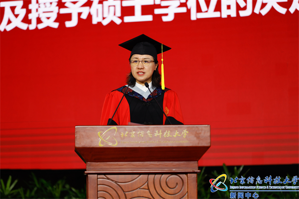 校党委常委、副校长王兴芬宣读学校《关于准予2023届研究生毕业及授予硕士学位的决定》。