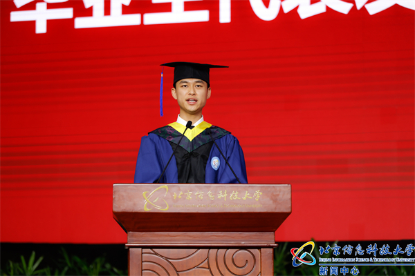 信息与通信工程学院院长曹林教授作为研究生导师代表发言。曹林指出,2023届同学虽遭遇疫情、几经波折,但也在短短这几年间见证着国家改革发展的伟大变迁,见证着学校事业发展的突飞猛进,这样的宝贵经历将会持续塑造、感动、助推着同学们,坚定自信地走向未来。希望同学们立德为先、勇攀高峰,学无止境、与时俱进,学会生活、健康发展;永远怀抱初心,仰望星空,脚踏实地,做最好的自己。