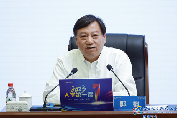 大学是什么?你眼中的大学是什么样的?信息科大在办学86年中经历了怎样的探索与发展?大学新生如何才能从无到有、从有到优,以创新驱动刷新人生副本?9月20日,校党委副书记、校长郭福在太行路校区(昌平)文理楼报告厅以“求变,求知,求真,求实”为主题为2023级全体本科生讲授“大学第一课”,为新生开启大学生活、创造别样人生指引前进方向。“大学第一课”由校党委副书记王文杰主持。
