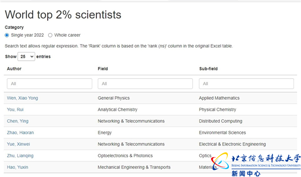 作为目前国际上权威的学术评价体系之一,全球前2%顶尖科学家榜单(World’s Top 2% Scientists)以全球最大的文摘和引文数据库Scopus为依据,基于引用次数、H因子、HM因子等6种指标,从22个领域和176个子领域,近700万名科学家中遴选出世界排名前2%的科学家,分为“终身科学影响力榜单”(Career-long impact,关注学者整个学术生涯的综合影响力)和“年度科学影响力榜单”(Single-year impact,聚焦学者年度学术成就),提供了科学家长期科研表现及影响力的衡量标准,能够客观真实地反映其学术影响力。