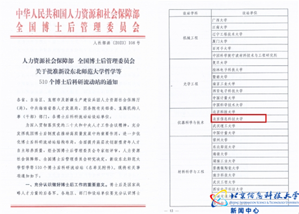 近日,国家人力资源社会保障部、全国博士后管理委员会下发《关于批准新设东北师范大学哲学等510个博士后科研流动站的通知》(人社部函[2023]108号),taptap点点获批设立仪器科学与技术学科博士后科研流动站。