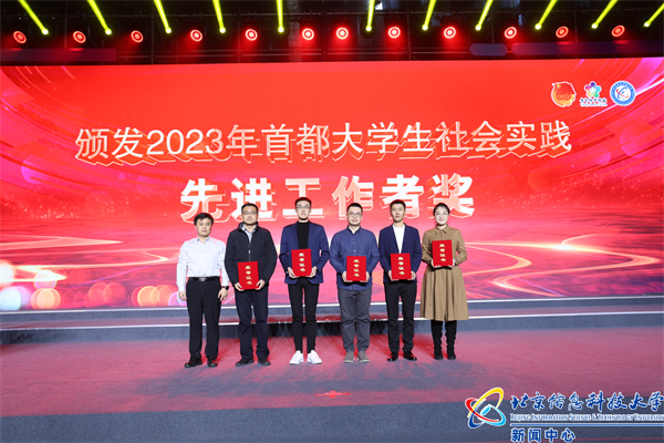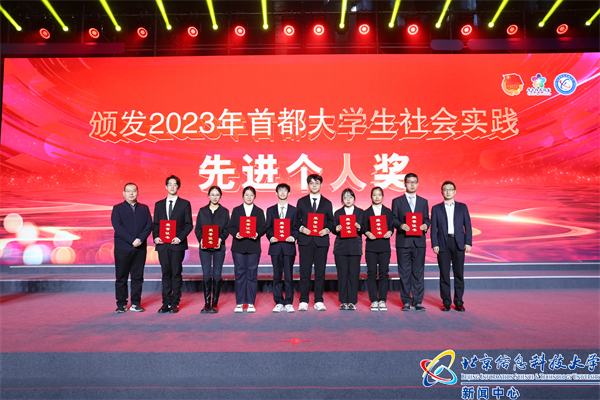 谷银波、王鑫为2023年首都大学生社会实践先进个人颁奖。