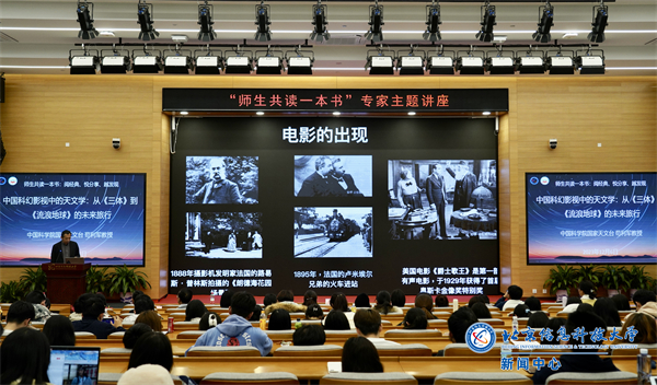 为落实学校党委“外树形象,内聚力量,服务师生,加快发展”理念,培养师生创造性思维和思辨能力,特别是培养学生良好的学习习惯、阅读习惯,增强全校师生归属感和凝聚力,学校启动了“师生共读一本书——阅经典、悦分享、越发现”(One Book One Community—Read,Share, and Discover)读书活动。活动围绕《三体》一书展开,本次专家讲座是系列活动之一。接下来,学校将为师生提供更丰富、更优质的学习交流平台和阅读资源,营造积极向上、书香浓郁的校园文化氛围,为加快建设信息特色鲜明的高水平大学汇聚精神文化创新力量。(供稿/图片:图书馆 谢思聪 孙继超 编辑:李萌 审核:杨静)