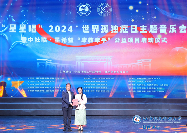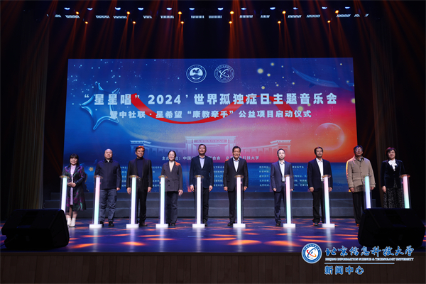 解江凌在致辞中向莅临活动的嘉宾表示欢迎,向关心支持孤独症群体的各界人士致以衷心的感谢和崇高的敬意。他表示,高校作为汇聚智慧的灯塔和传承文化的基地,除了担当育人使命外,还应充分彰显社会价值。学校自红色基因立校以来,始终坚持与祖国发展同频共振。当前,学校以习近平新时代中国特色社会主义思想为指导,以“服务校园、服务属地、服务北京、服务国家”为宗旨,高度关注社会问题,勇于承担社会责任,在服务中求发展。通过举办本次活动,为“星星的孩子”搭建立体互助平台,凝聚社会多方力量,提高人们对孤独症患者的关注,为孤独症群体融入社会开创一条更加包容的道路,这是一项从春天出发、向春天报到、与春天同行的事业!希望借本次活动,吸引更多群体参与到孤独症公益活动中,共同点亮孩子们前行的灯,汇聚成孤独星球里最温柔的浪漫。学校也将以本次活动为契机,在社会各界的信任支持下,继续传递志愿精神、凝聚志愿力量,践履社会责任,传承弘扬好高水平大学的情怀担当。