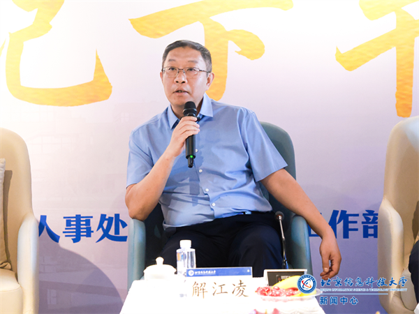 在与大家的交流中,解江凌诚恳地表示,学校党委一直高度重视青年教师的发展,通过探究教师成长的内在规律,围绕教师成长发展需求,多措并举,共同促进教师专业化发展,加快教师成长成才。他结合自身工作生活中的体会及身边的生动案例,对青年教师的发展提出四点期望:一是“爱国”,要以学校建设发展史上的先辈为榜样,厚植爱国情怀,淬炼敢打敢拼、永不言败的精神,以小我融入大我,以青春奉献祖国;二是“爱校”,要不忘初心、牢记使命,力争在教育科研的岗位上作出更多贡献,回馈学校,实现个人与学校共同进步与发展;三是“爱家”,在事业和家庭之间寻找平衡,把教师“最重要的事业”经营好、建设好;四是“爱自己”,培养好的生活习惯、学习习惯、锻炼习惯,守住师德底线,不断提升自己。最后,他与参会的老师们分享了四种关系,即个人与学校休戚与共的关系、教学与科研相辅相成的关系、教学科研与行政管理相互促进的关系,当下与未来相互成就的关系。解江凌深情寄语青年教师:“学校有多高,我们就会有多高,而学校能有多高、能有多强,全靠每一名老师的不懈奋斗。让我们携起手来一起奋斗,共同谱写信息科大的美好明天。”